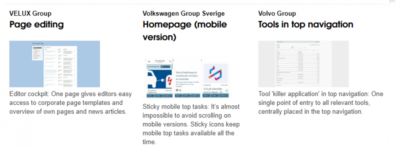 Gå på jagt i screenshottene her på Intra2.dk og få inspiration fra løsninger, som fungerer i praksis. Der er helt sikkert nogle gode idéer, som også vil fungere på dit intranet.